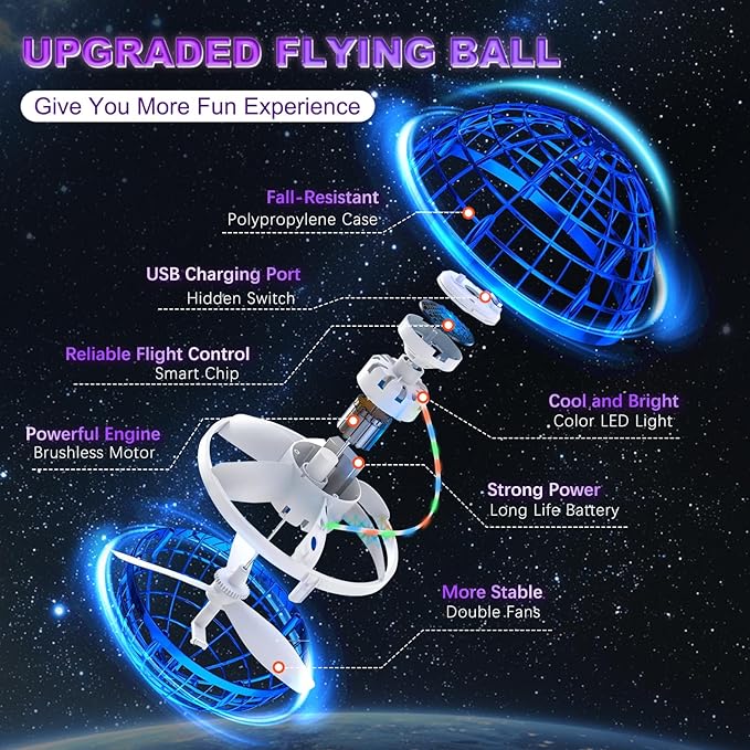 Rechargeable flying ball that returns like a boomerang, adds thrilling outdoor play and easy hands-free tricks for players.