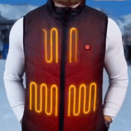 The jacket uses built-in carbon fiber heating elements powered by any standard USB power bank (5V/2A). Just plug it in, press the control button, and choose your heat level.